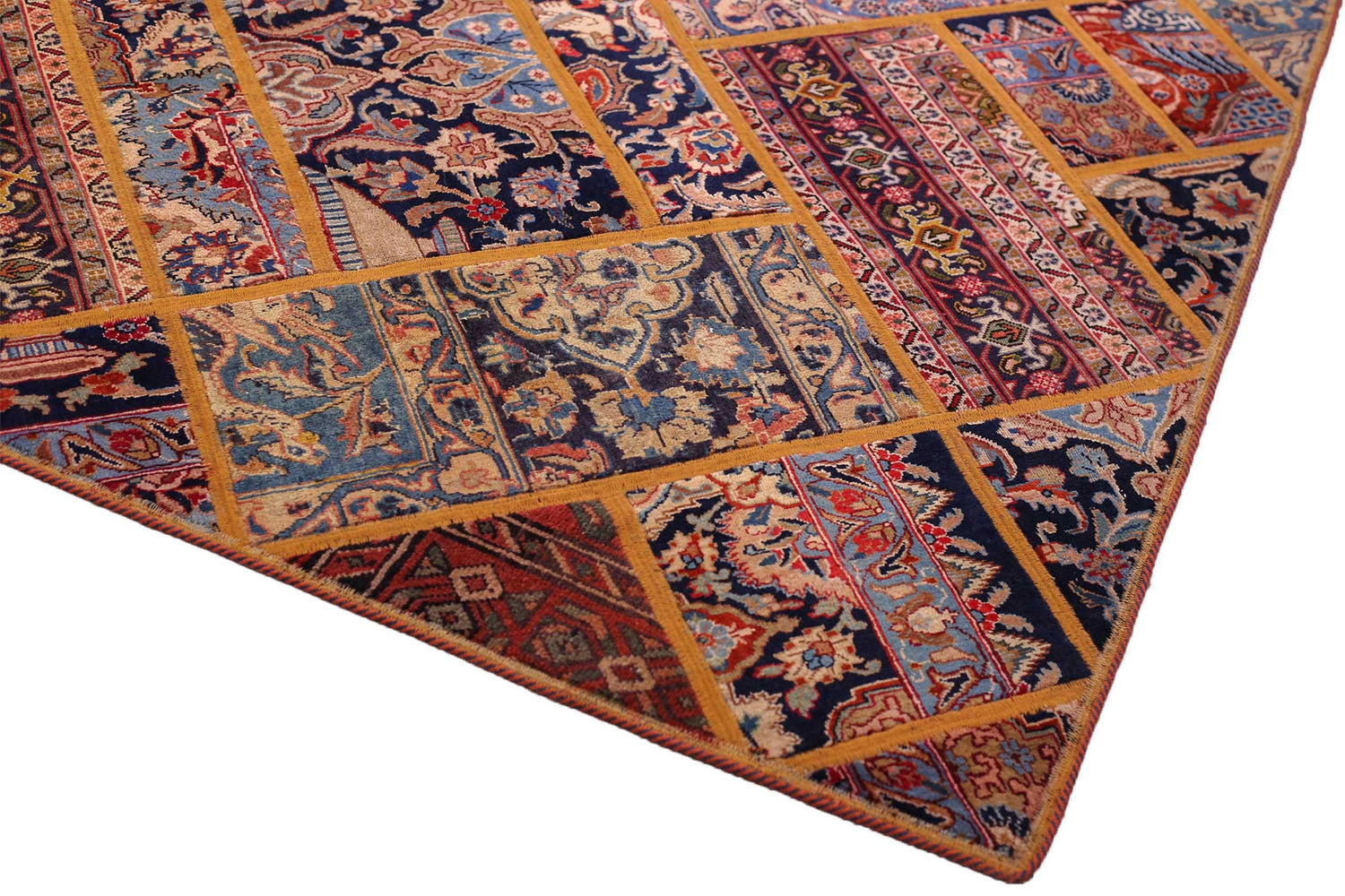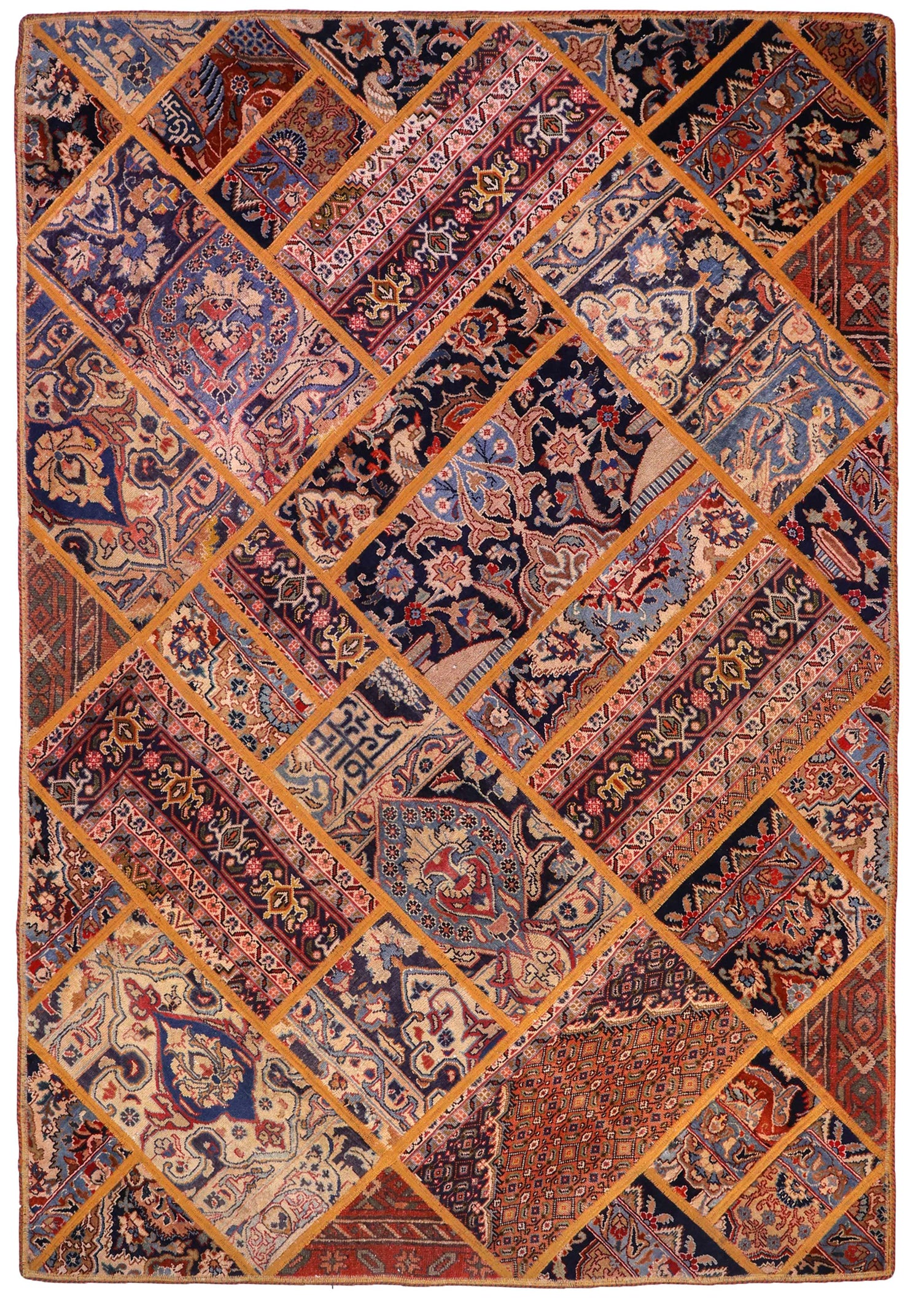 The NomadicArt Patchwork Rug is a masterful assembly of selected fragments from high-quality oriental rugs. Handwoven by expert artisans, it features a harmonious mix of vivid colors and elaborate motifs, elevating it from a mere rug to a significant decorative feature. Boasting unique patterns and outstanding craftsmanship, this patchwork rug enriches any setting, acting as a remarkable centerpiece for a variety of decor styles. It exemplifies a perfect blend of traditional weaving methods and inventive design.