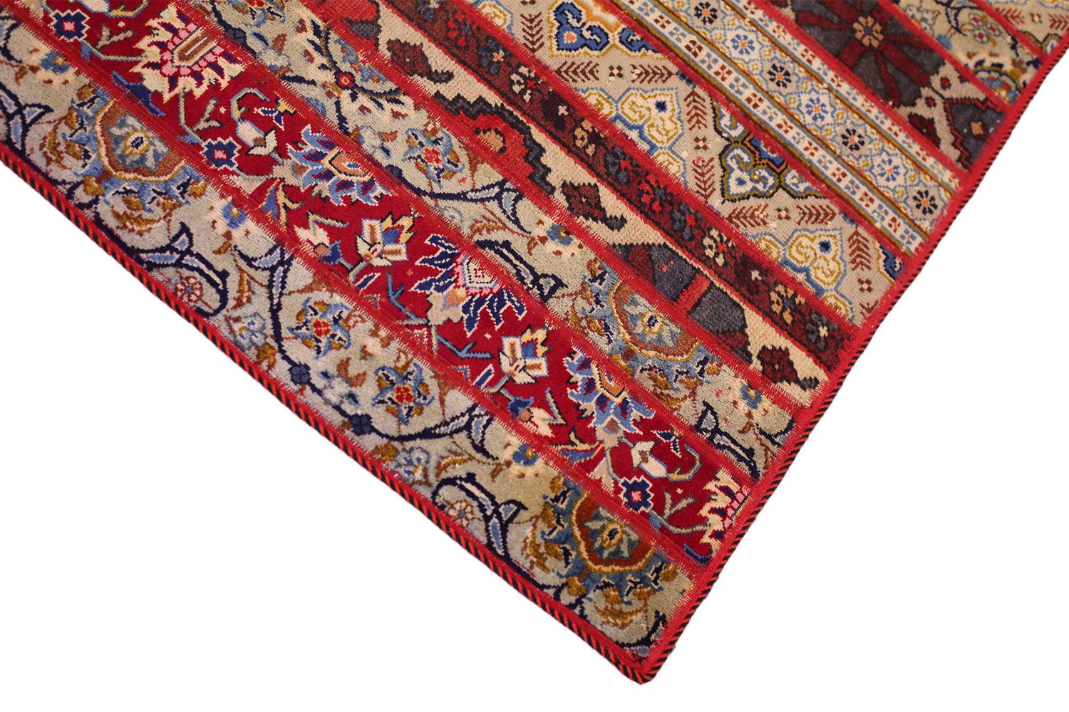 The NomadicArt Patchwork Rug is a masterful assembly of selected fragments from high-quality oriental rugs. Handwoven by expert artisans, it features a harmonious mix of vivid colors and elaborate motifs, elevating it from a mere rug to a significant decorative feature. Boasting unique patterns and outstanding craftsmanship, this patchwork rug enriches any setting, acting as a remarkable centerpiece for a variety of decor styles. It exemplifies a perfect blend of traditional weaving methods and inventive design.